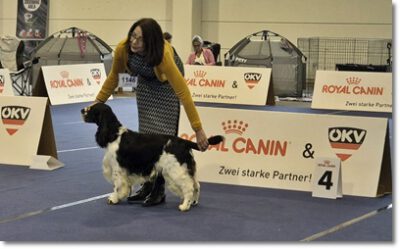 Dieses Jahr konnten wir das Best in Show nur in der Ehrenklasse einheimsen, aber Angus wurde den zweiten Tag Best of Breed, Best in Show wurde der English Cocker Spaniel.