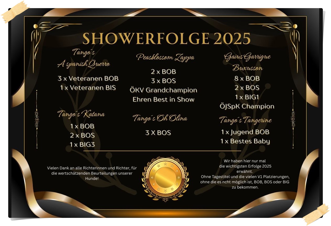 2024 haben wir viele Erfolge gefeiert, einige neue Championtitel geholt, aber viel wichtiger ist die Gesundheit unserer Hunde und von uns.