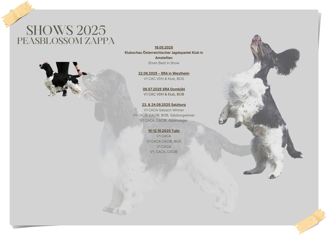 Die erste Show war nur eine CAC Show, die zweite eine Cacib Show. Da beide Veranstaltungen vom ÖKV durchgeführt wurden, brachte es nichts Angus hier zu melden. Österreichische Cacibs hat er genug, er brauchte die CAC´s vom österreichischen Jagdspaniel Klub.