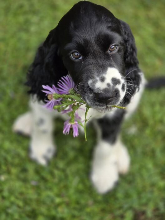 Wie bei jedem Wurf kommen dann die Erinnerungen an Frodo hoch. Frodo war ein Cockerkind, der erste Welpe aus dem F-Wurf von Ronja.